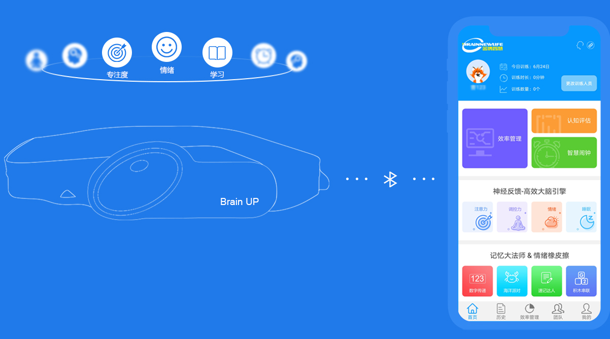 通过对脑电波数据进行采集,配合专用APP,实现对大脑专注度提升训练